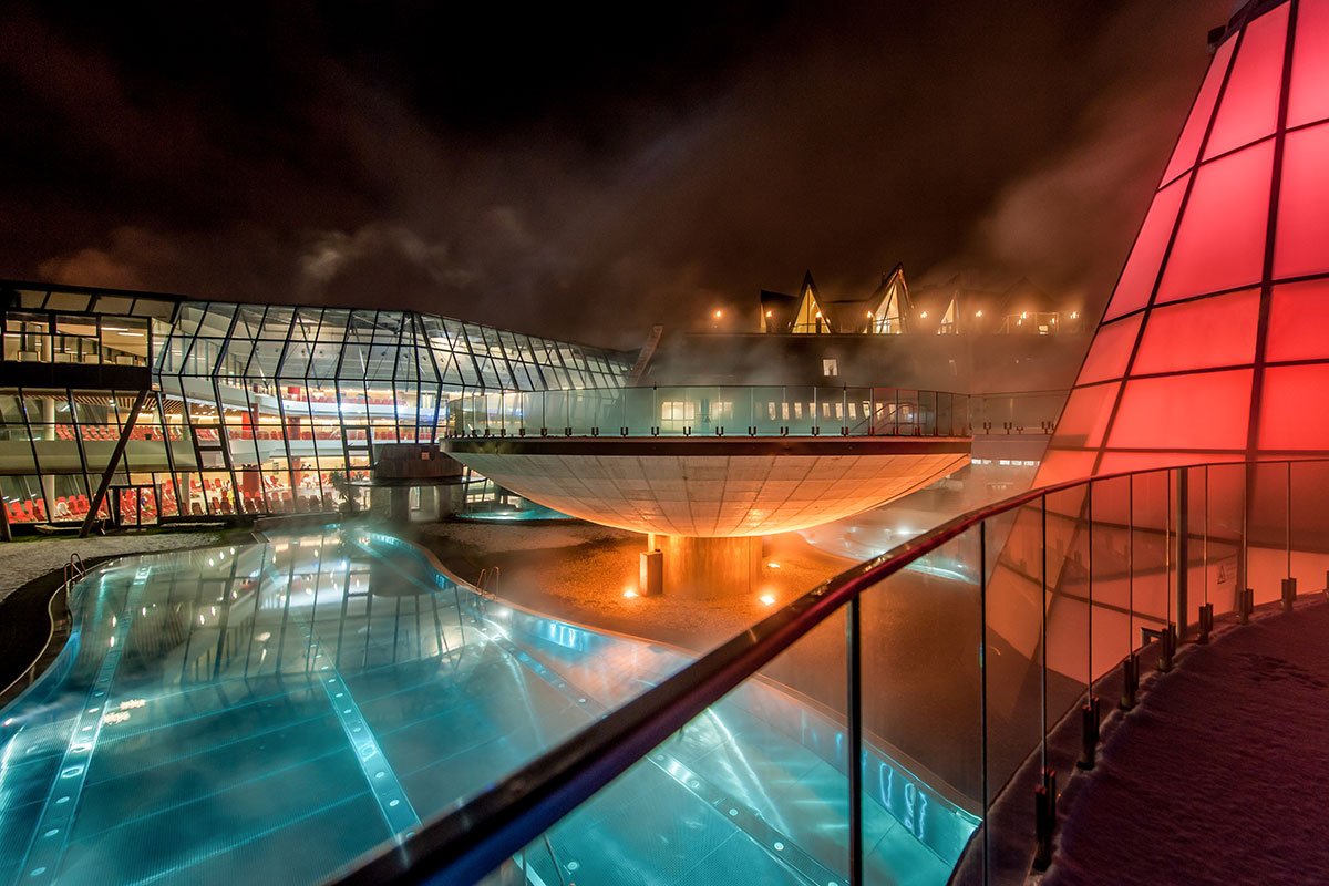Nicht nur die Aussicht auf die Gipfel fasziniert: Der Aqua Dome im Ötztal begeistert auch durch seine eigenwillige, futuristische Architektur und die fantastische Inszenierung des Urelementes Wasser.